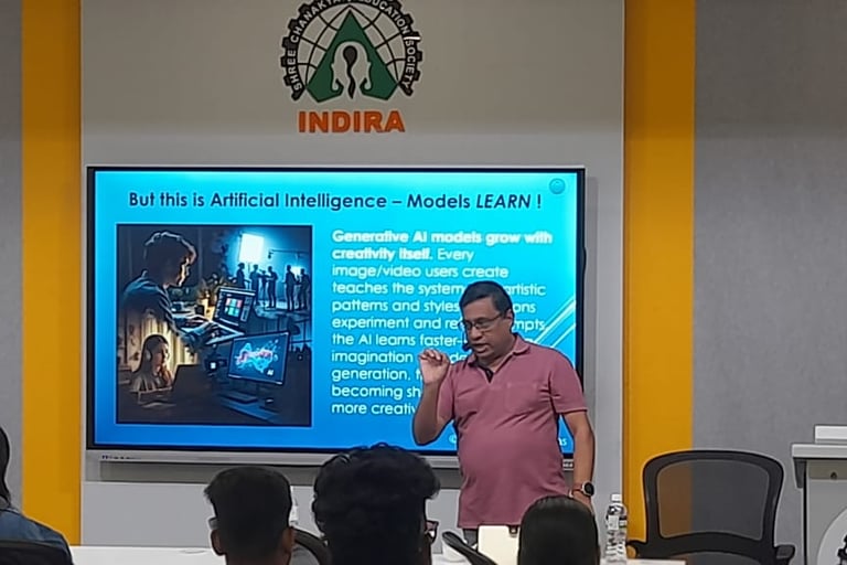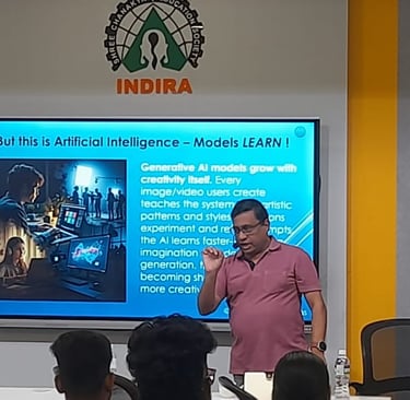 On Monday, 17th November had an engaging session on AI Filmmaking and introduced the vision and learning model of the School of AI Films (SAIF) at the School of Liberal Arts, Indira University, Pune. The audience—around 70 students along with faculty members—responded with curiosity and enthusiasm as we explored the evolving intersection of storytelling, cinema, and next-generation AI tools.