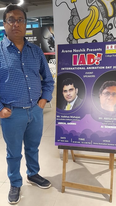 On 29th November, I had the chance to dive into AI Filmmaking and share the vision behind the School of AI Films (SAIF) at the ASIFA India International Animation Day 2025, hosted at Arena Animation, Nashik. Over 200+ creative students packed the auditorium—and their energy was incredible.